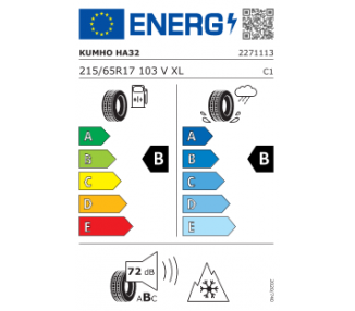 Pneu 4 saisons 215/65-17XL Kumho HA32 103V 3PMSF MPN: 2271113 EAN: 8808956281656